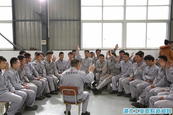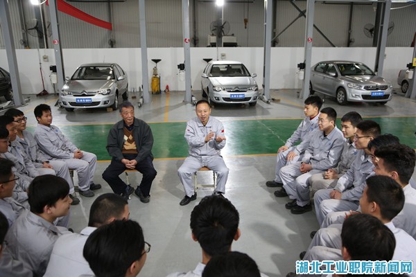 在汽车检测维修实训车间的录制现场,王涛、王建清和师生围坐一堂,宣讲两会精神,阐述职业教育发展方向和工匠精神实质。王涛老师告诉同学们,一生中一直在做同一件事,做精而不厌,如切如磋,如琢如磨,就会成长为专家,就是能工巧匠。在互动环节,王建清回答同学们的提问时说,学习中坚持去琢磨汽车的配件、原理、故障,坚持到毕业,就会成为能工巧匠;工作中同样再坚持,就会一个台阶一个台阶的成为熟练工、技术能手、专家、工匠大师,坚持做专就能做强。