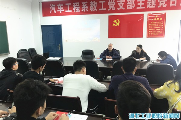 (通讯员 赵锐)为提高学生党员的政治素养和工作能力,进一步发挥学生党员在顶岗实习中的先锋模范带头作用,汽车工程系学生党支部于10月26日上午在5508教室举行十月份主题党日活动,活动由学生党支部书记柳海涛主持。
