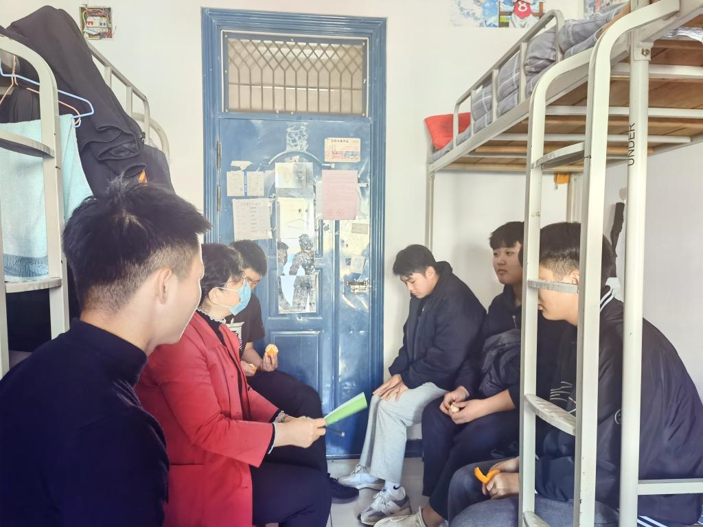 老师们利用课余、中午或者晚间深入2021级新生宿舍,与同学们进行深入交流,了解同学们的思想动态、学习和生活等诉求,引导大家正确认识疫情防控形势下校园封闭管理的必要性,及时接种新冠疫苗,提醒大家注意冬季消防安全、及时做好宿舍卫生,共创十星级文明寝室。同时,老师们对新生们提出了殷切期望,希望大家尽早做好大学生活规划,确立专业学习目标,并对学习中的一些疑难问题进行了解答。