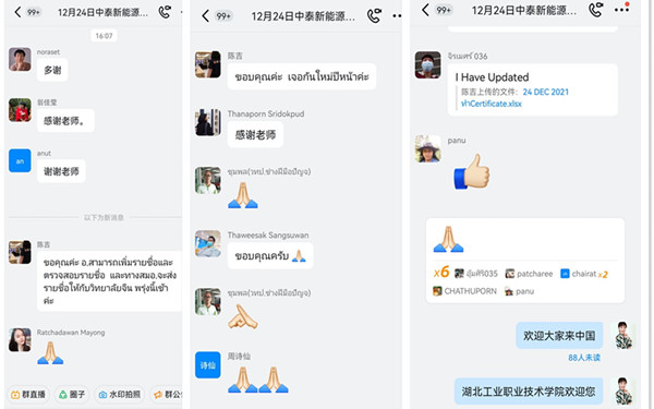 两位授课教师丰富的专业积累、生动的示范讲解和干练的授课风采给泰国参训教师留下了深刻的印象,引发了课后学习交流群的热烈讨论,激发了他们投身新能源汽车技术专业建设的愿望和到中国、到米兰milan官方网站继续交流学习的热情。