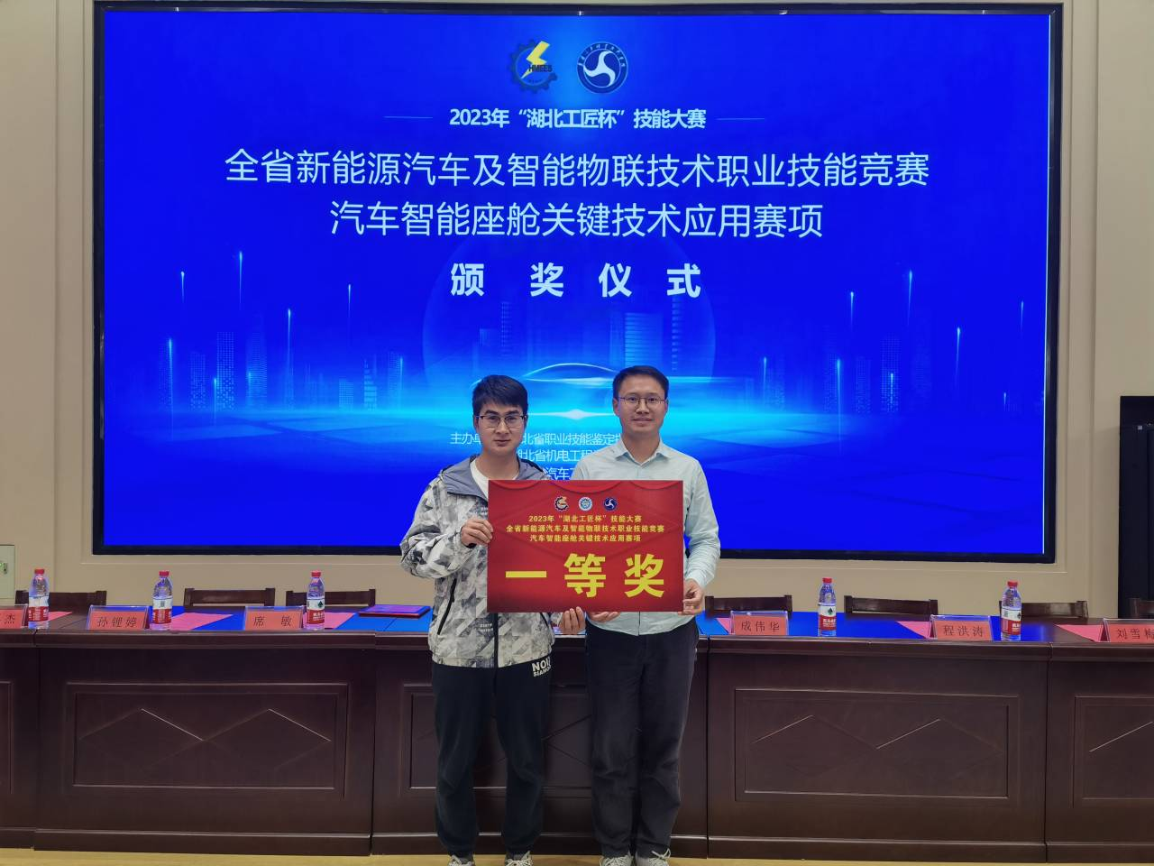 (通讯员:张超、唐晋)10月20日至22日,2023年“湖北工匠杯”技能大赛——全省新能源汽车及智能物联技术职业技能竞赛汽车智能座舱关键技术应用赛项在襄阳汽车职业技术学院举行。来自湖北省23所院校及1家企业的46支队伍,近百名参赛选手同台竞技,米兰milan官方网站教师唐晋、范伶松参加竞赛,经过激烈拼搏最终斩获一等奖。