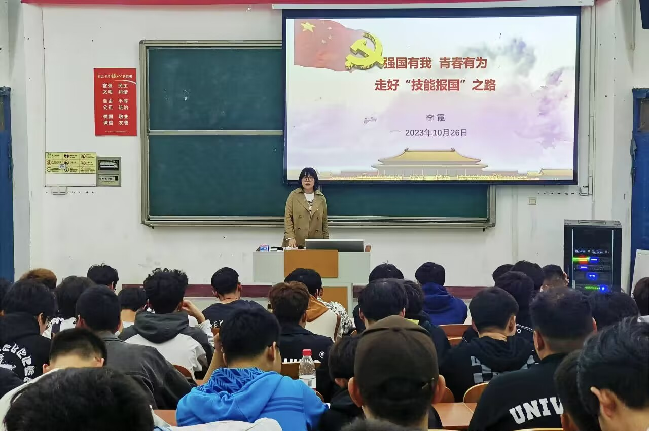 党总支书记李霞以《强国有我,青春有为,走好“技能报国”之路》为题讲主题党课,结合学院优秀青年学子的先进事迹,勉励学员们坚定理想信念,担当时代责任,练就过硬本领,矢志艰苦奋斗。她希望广大学员不仅是创造历史的见证者和亲历者,更是建设者,让青春在全面建设社会主义现代化国家的火热实践中绽放绚丽之花。