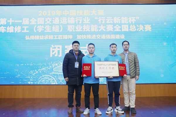 新闻网讯(通讯员陈高峰 江鹏飞)11月19日21日,第十一届全国交通运输行业“行云新能杯”汽车维修工(学生组)职业技能大赛全国总决赛在天津交通职业学院举行,米兰官网米兰milan官方网站2017级新能源汽车技术专业参赛学生团队张鑫、方元彬荣获三等奖。